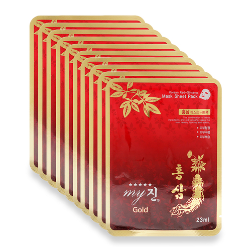 Đắp mặt hồng sâm Korea Red Ginseng Mask Sheet Pack My Gold với tinh chất hồng sâm 6 năm tuổi Hàn Quốc, giúp cho da bạn luôn khỏe mạnh, ngăn ngừa mụn, chống nám và tàn nhang, chống nhăn, chống lão hóa và tác hại của môi trường giúp trẻ hóa tế bào da.