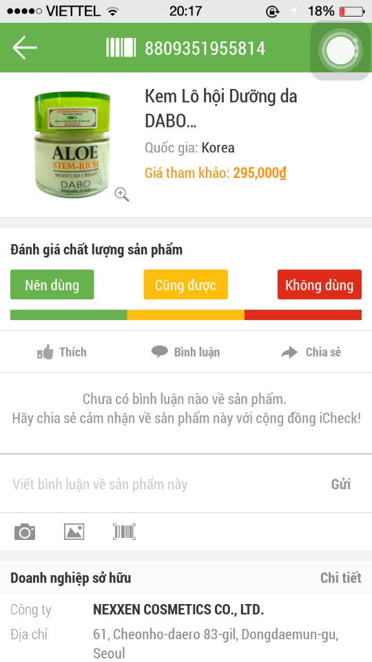 3. Sản phẩm của Công ty Thiên Anh được đăng ký chống hàng giả, nên khi dùng phần mềm kiểm tra mã vạch I-check sẽ hiển thị lên thông tin hàng hóa. Bạn có thể tải phần mềm Icheck lên điện thoại thông minh để kiểm tra sản phẩm. Phần mềm này tải rất đơn giản và hoàn toàn miễn phí bạn có thể tải tại địa chỉ https://icheck.vn/. Bạn chỉ cần đưa máy ảnh của điện thoại vào mã vạch thì thông tin sản phẩm sẽ hiện lên với đầy đủ thông tin.