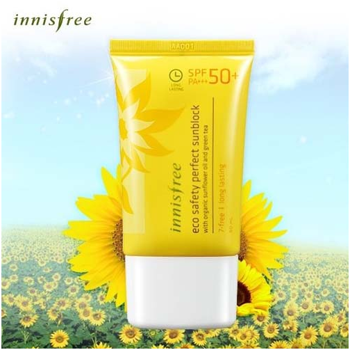 Innisfree Eco Safety Perfect Waterproof Sunblock SPF50 PA+++ là kem chống nắng vật lý do thành phần có mặt đủ Zinc Oxide và Titanium Dioxide, chỉ cần dùng một lần trong ngày, không cần thoa lại sau mỗi 2 giờ. Sản phẩm có giá khoảng 300.000 đồng.