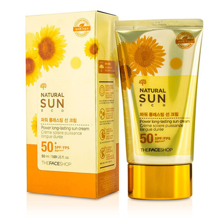 The Face Shop Nature Sun Eco Super Perfect Suncream có chiết xuất hoa hướng dương dịu nhẹ, thơm mát, phù hợp với mọi loại da. Giá của sản phẩm là khoảng 300.000 đồng.