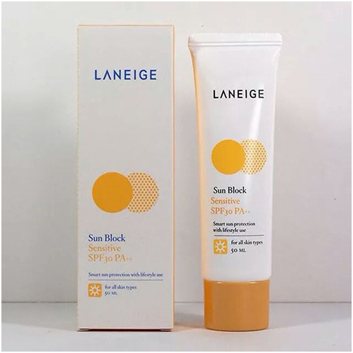 Kem chống nắng của 'Trung úy Yoon' Laneige Sun Block Sensitive có chất kem trắng, thẩm thấu nhanh trên da, không gây nhờn dính. Sản phẩm có giá khoảng 500.000 đồng.