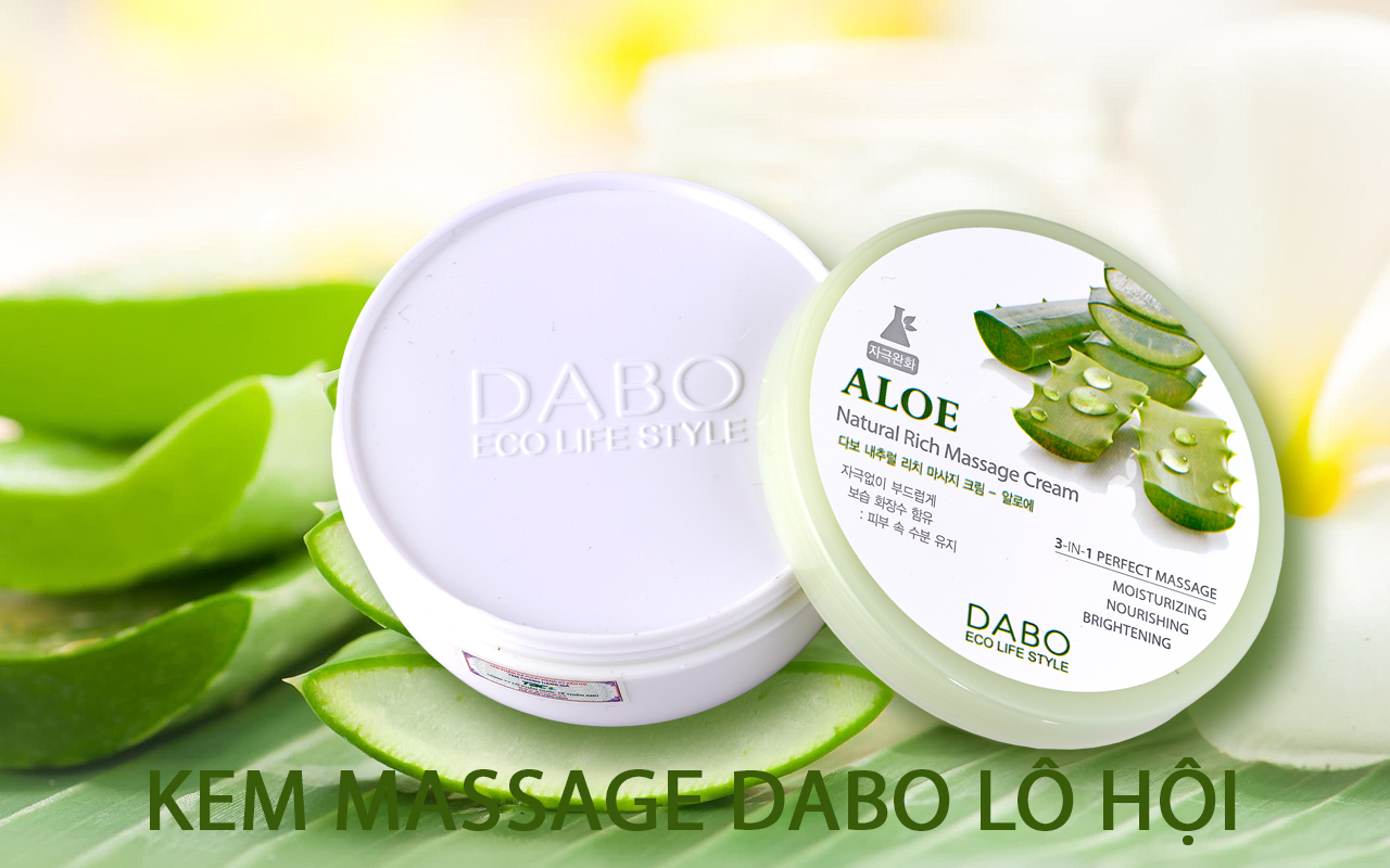 Công dụng: Chiết xuất từ tinh chất cây Lô Hội có tác dụng làm giảm các vết thâm nám, làm trắng da, giảm nếp nhăn, tái tạo tế bào da, tinh chất lô hội chứa nhiều Vitamin A, C, E, B1, khoáng chất can-xi, natri, kẽm giúp loại bỏ lớp bụi bẩn và bã nhờn, tạo độ ẩm cho da, giúp da dễ đàn hồi, se khít lỗ chân lông. Dùng kem mát-xa Lô hội DABO hàng ngày còn giúp giảm các lớp mỡ thừa dưới da, giảm béo không gây nhờn da, dùng để massage mặt, bụng, đùi...hiệu quả giúp chăm sóc da một cách tự nhiên cho bạn làn da mịn màng, săn chắc bằng cách kích thích sự liên kết của cấu trúc da. Thích hợp với mọi loại da, hiệu quả đặc biệt với da nhờn, da khô.