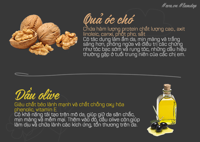 Quả óc chó và dầu olive không chỉ ngăn ngừa và làm chậm quá trình lão hóa mà còn rất tốt cho sức khỏe