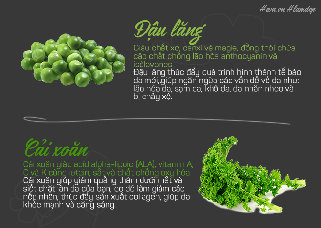 Đậu lăng và cải xoăn là hai thực phẩm vừa hỗ trợ giảm cân, vừa giúp làm đẹp da đó. Tuy nhiên cần lư ý phải dùng đậu đun kĩ thì mới gia tăng hiệu quả dinh dưỡng.