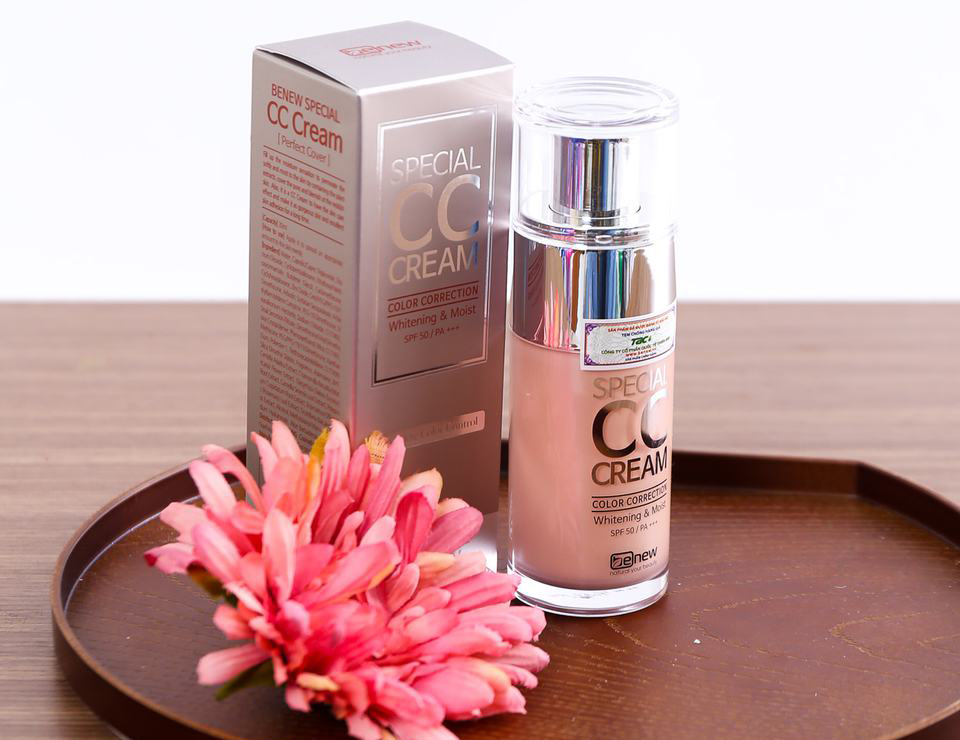 - Kem nền "đa- zi- năng": BENEW Special C.C Cream không được xếp hoàn toàn vào dạng mỹ phẩm trang điểm hoàn toàn mà nó hợp hơn khi nằm trong mục sản phẩm chăm sóc da. Với CC Cream Benew, ngoài khả năng trang điểm che khuyết điểm, nó còn chống nắng tốt với chỉ số SPF 50+, PA++++, đồng thời chứa các thành phần giúp cải thiện da. Các kem này giữ ẩm, giúp da bớt nhạy cảm và làm cho màu da trở nên đồng đều hơn.
