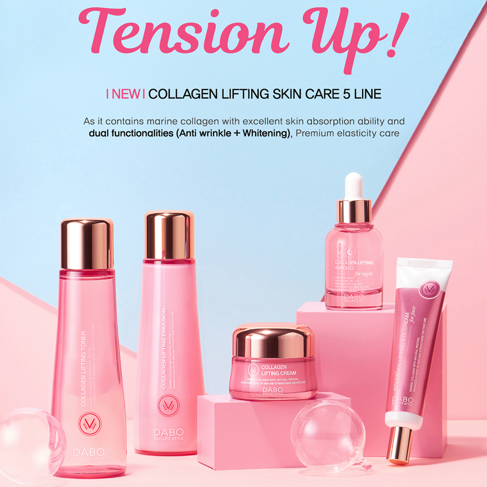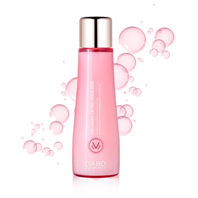 Công dụng: Sữa dưỡng chuyên sâu tinh chất Collagen thủy phân thẩm thấu sâu vào da, giúp giảm và làm mờ các nếp nhăn, nâng cơ và chống lại quá trình lão hóa da cực kỳ hiệu quả. Các Acid béo tự nhiên tạo lớp màng ẩm bảo vệ da chống lại các tác động bên ngoài, đồng thời nuôi dưỡng và bổ sung độ ẩm cho da lão hóa, đẩy lùi các hiện tượng da thô ráp, thâm nám, trùng nhão và chảy xệ trên da, là giải pháp cải thiện da từ trong ra ngoài rất toàn diện. DABO Collagen Lifting Skin Emulsion giúp mang lại làn da trẻ trung, khỏe mạnh và trắng hồng sau 3 tuần sử dụng. Dùng được cả ban ngày hoặc ban đêm. Hiệu quả tốt cho da bắt đầu bị lão hóa sau tổi 30, thích hợp với da thường, da khô.