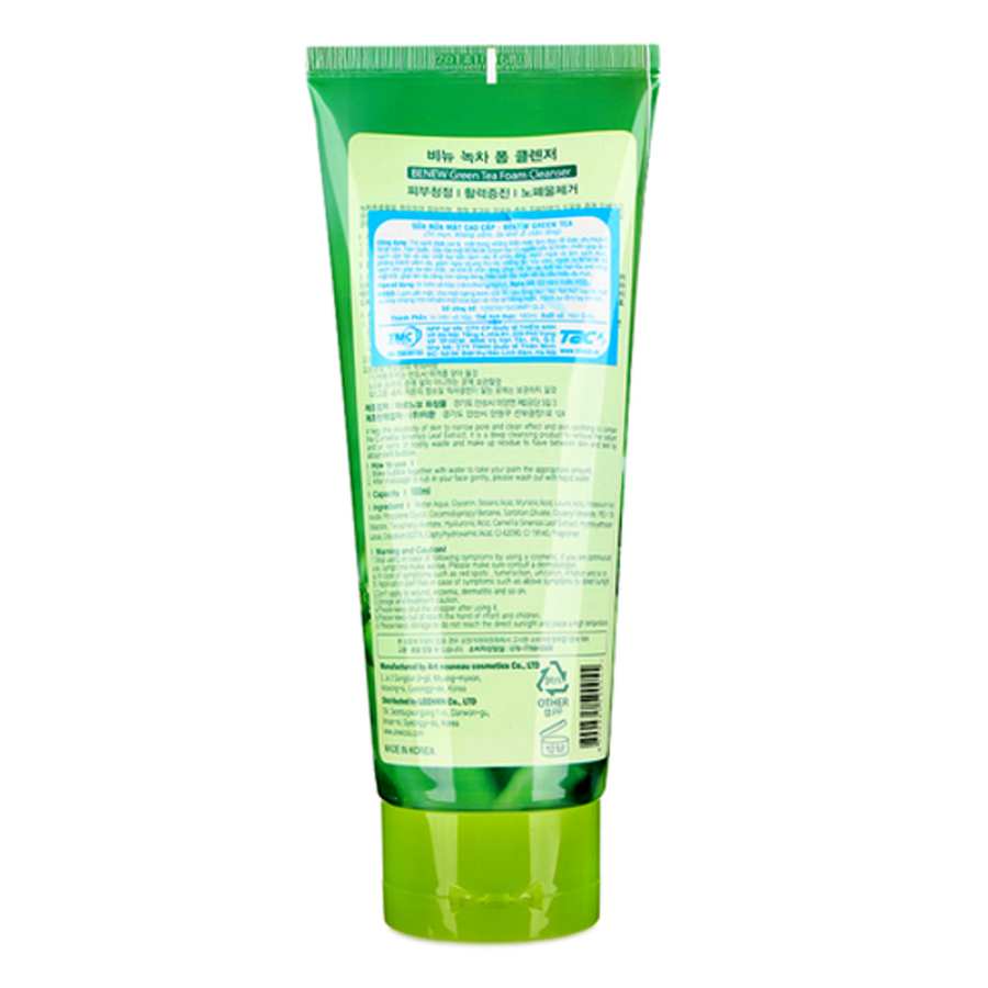 Sữa rửa mặt Benew Green Tea Foam Cleanser chứa chiết xuất trà xanh không chỉ làm sạch da, loại bỏ bụi bẩn, tạp chất, bã nhờn trên da và sâu trong lỗ chân lông, ngăn ngừa mụn mà còn cung cấp dưỡng chất, độ ẩm, chống viêm da, giúp da săn chắc và bảo vệ da khỏi tác động của ánh nắng mặt trời. Sản phẩm có thành phần được kiểm định và chứng nhận hoàn toàn tự nhiên, thích hợp với mọi loại da, đặc biệt là da dầu, da nhiều mụn.