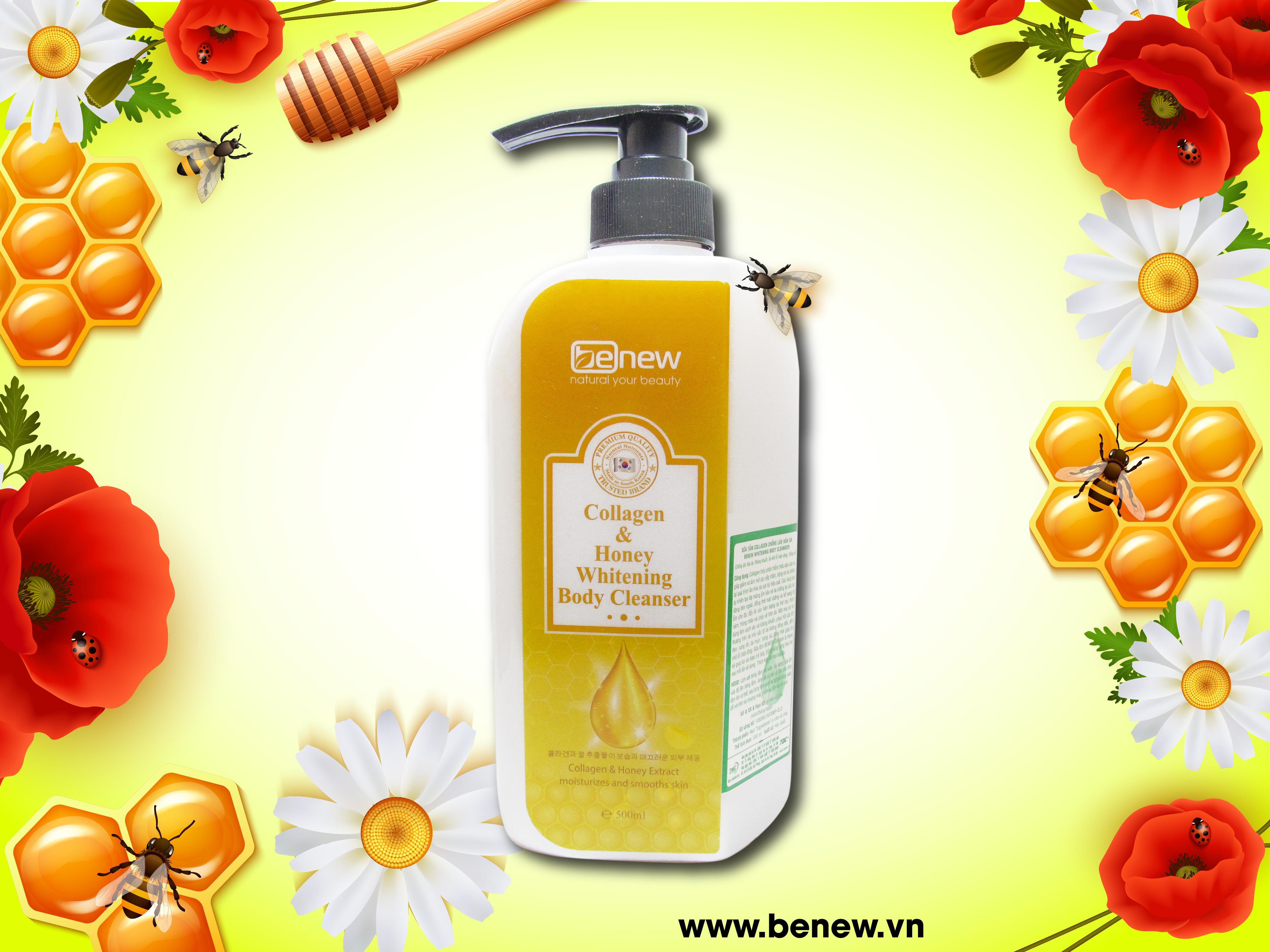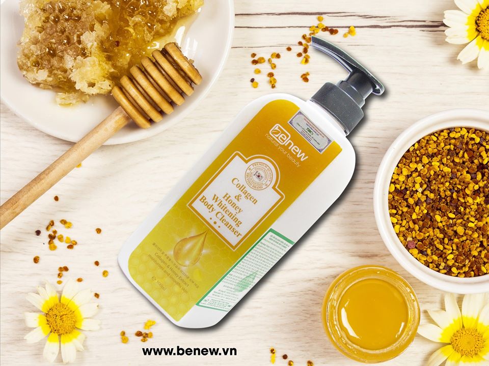 Sữa tắm – Benew Whitening Body Cleanser sản phẩm chiết xuất từ thiên nhiên với sự kết hợp của mật ong, Collagen cho tác dụng chăm sóc da toàn diện. Dưỡng chất từ Collagen, mật ong, vitamin E và tinh chất cây nha đam giúp da được bổ sung độ ẩm, tăng cường dưỡng trắng, đẩy lùi vết thâm nám, tàn nhang, giúp da mịn màng khỏe mạnh từ bên trong.