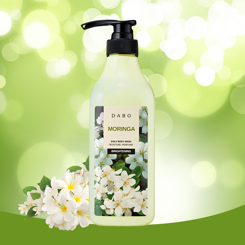 Sữa tắm Cao cấp DABO MORINGA có thành phần thiên nhiên được chiết xuất từ hoa MORINGA hay còn gọi là hoa cây “Chùm ngây” phổ biến vùng Nam á và Châu phi. Hoa MORINGA chứa nhiều các loại Vitamin C hơn trái cam tới bảy lần, bốn lần chất calcium và hai lần protein của sữa, bốn lần vitamin A của cà rốt, ba lần chất sắt của rau nhiếp và ba lần chất potassium của chuối. Do vậy sữa tắm DABO MORINGA có công dụng tuyệt vời như: