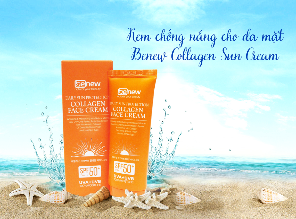 Không những vậy, công nghệ chống nắng độc quyền cùng khả năng chống nắng quang phổ rộng, Benew Daily Sun Protection Collagen Face Cream SPF 50 sẽ bảo vệ làn da hoàn hảo trước các tác hại của tia tử ngoại.